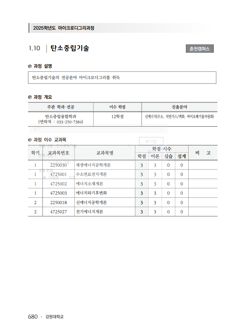 -탄소중립기술MD (12학점이상이수): 에너지와기후변화, 수소연료전지개론, 에너지소재개론, 재생에너지공학개론, 신에너지공학개론, 전기에너지개론